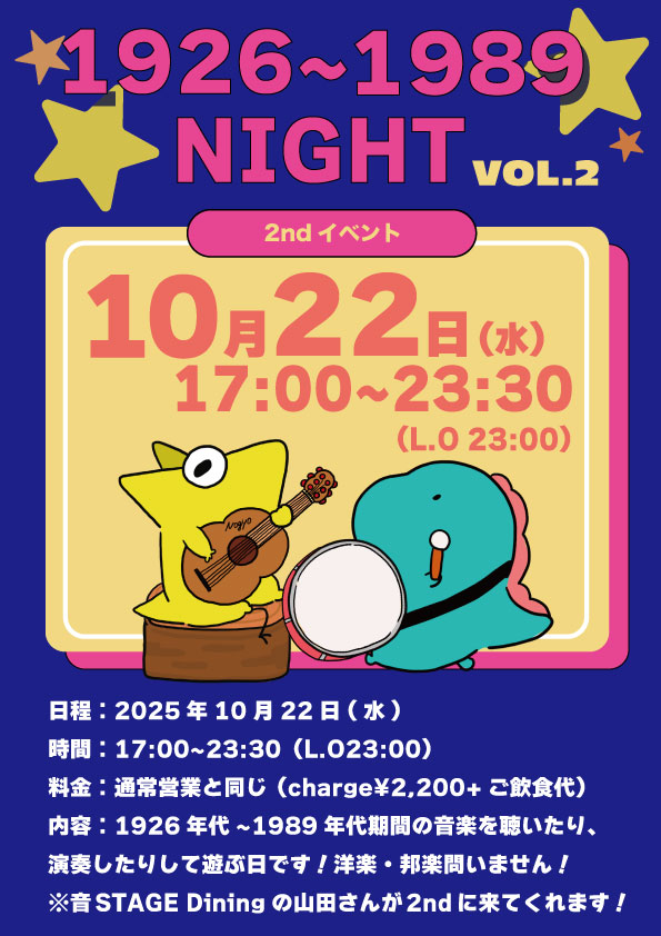 この日は、1926年〜1989年の音楽であれば洋楽・邦楽どちらでも演奏可能!