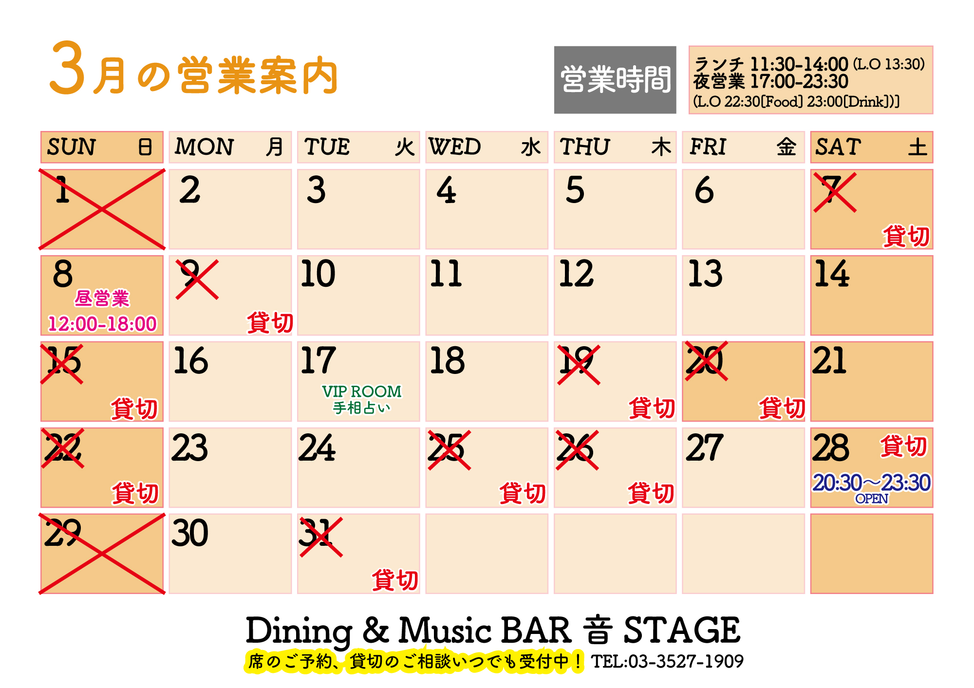 3月も音STAGEで楽しい時間を過ごしていただけたら嬉しいです✨